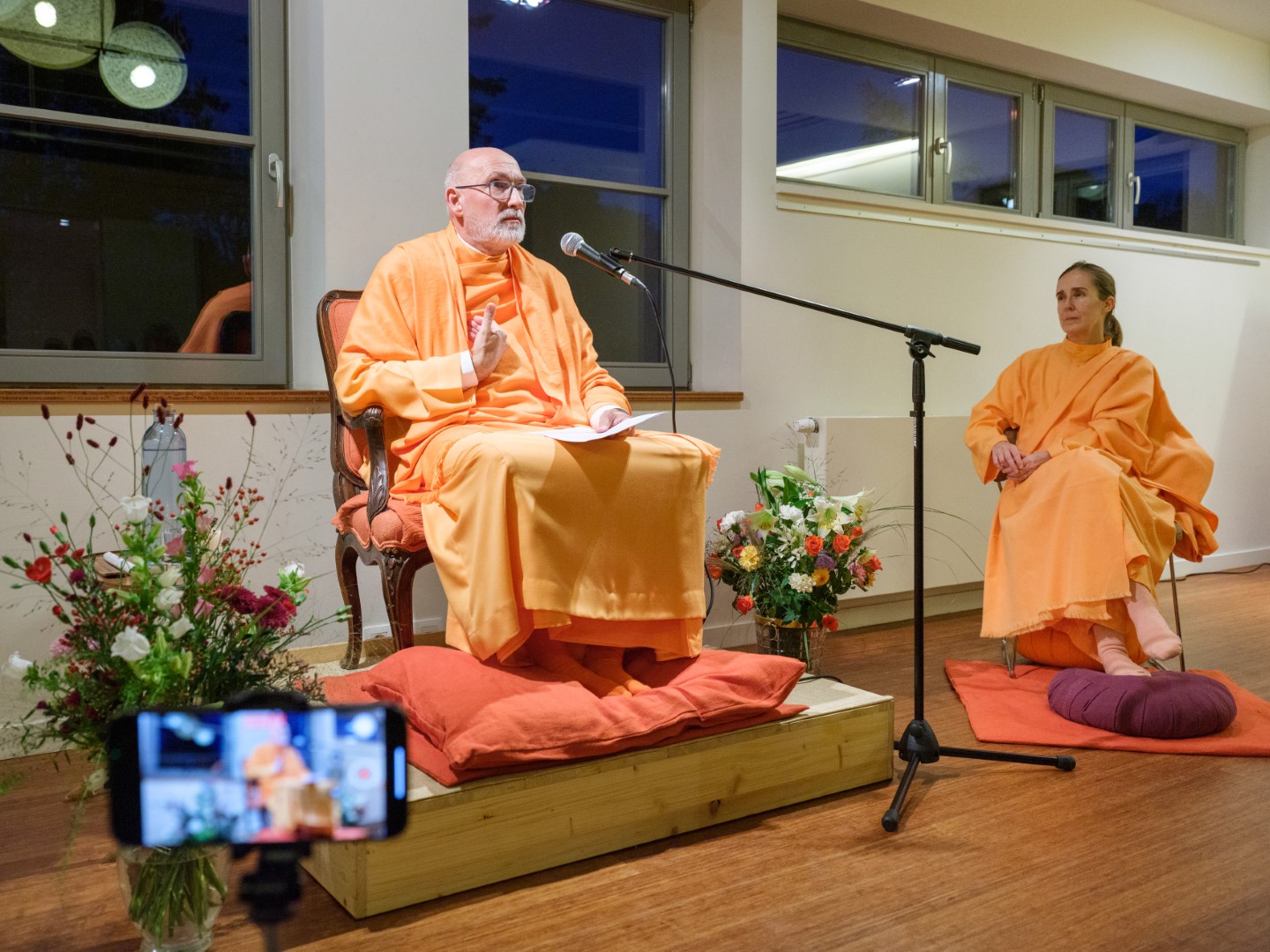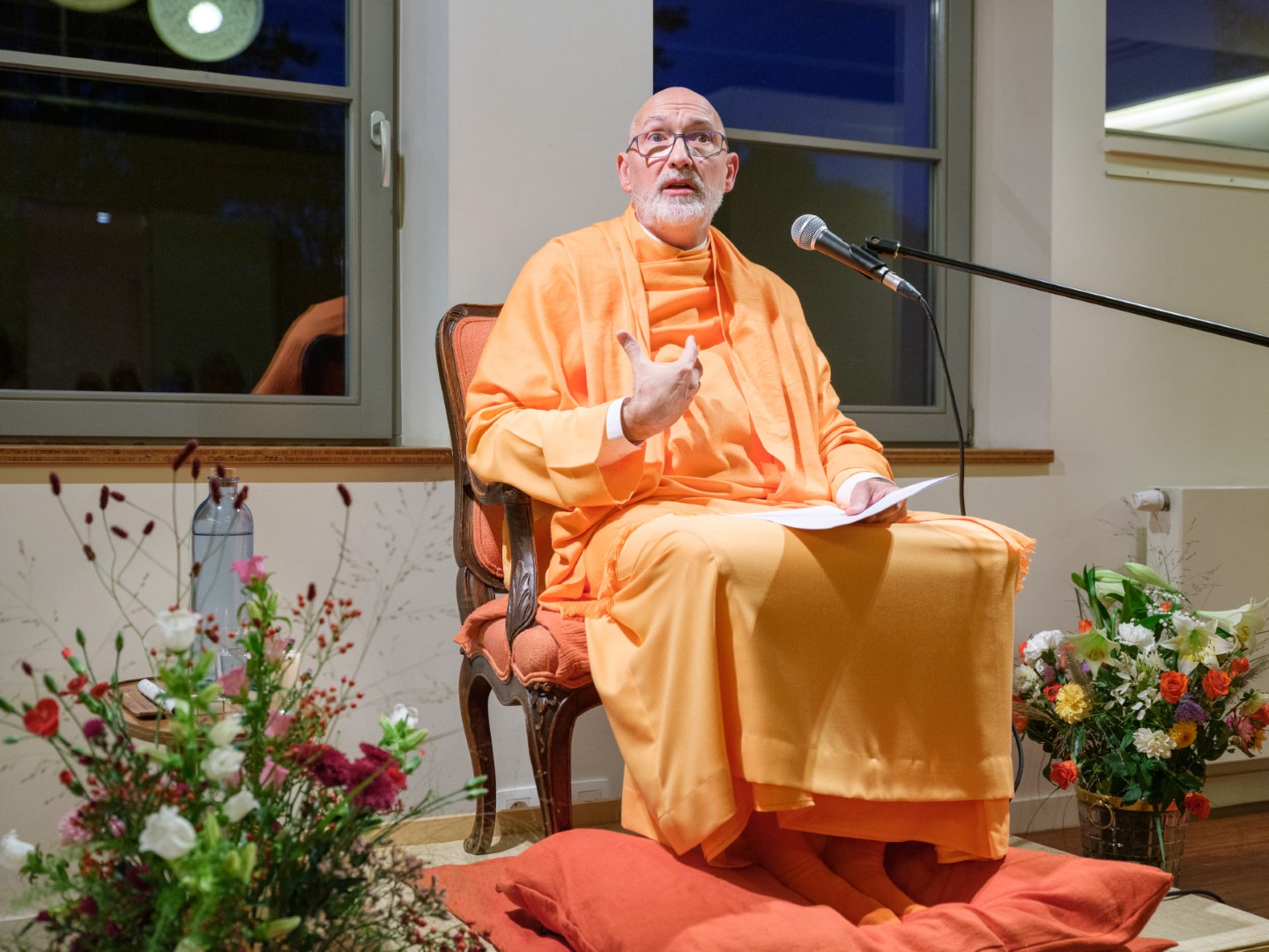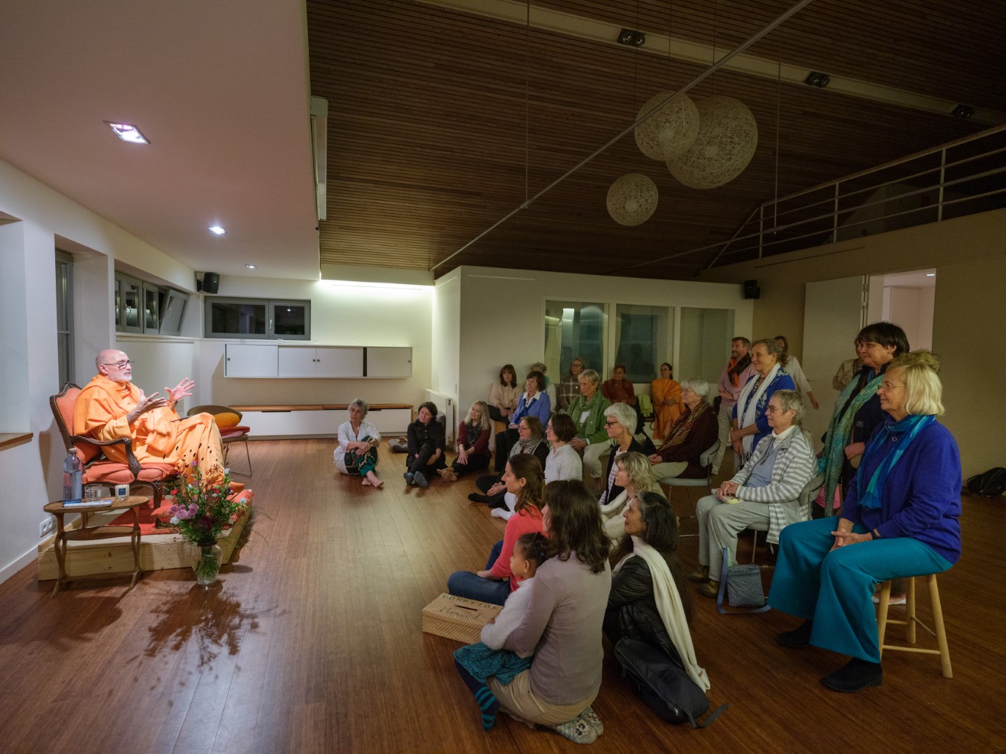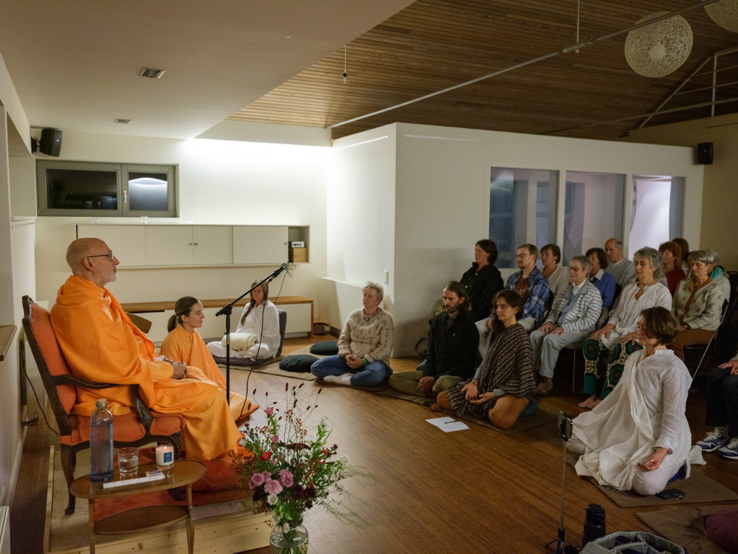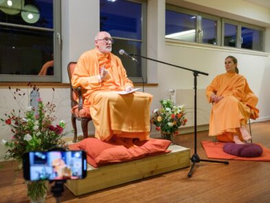 El pasado 26 de octubre de 2023, H.E. Pujya Swami Rameshwarananda Giri Maharaj ofreció una conferencia en el Centre Pérou de Bruselas. Al acto, que tuvo lugar en la gran sala de este centro, asistieron unas 70 personas que siguieron con atención las explicaciones sobre la importancia de la muerte como elemento catalizador de la atención. La conferencia fue seguida por una meditación que permitió a los asistentes poner en práctica las enseñanzas del Swami, que con su estilo ameno y claro, es capaz de acercar a público novel temas espirituales y transcendentales de importancia.