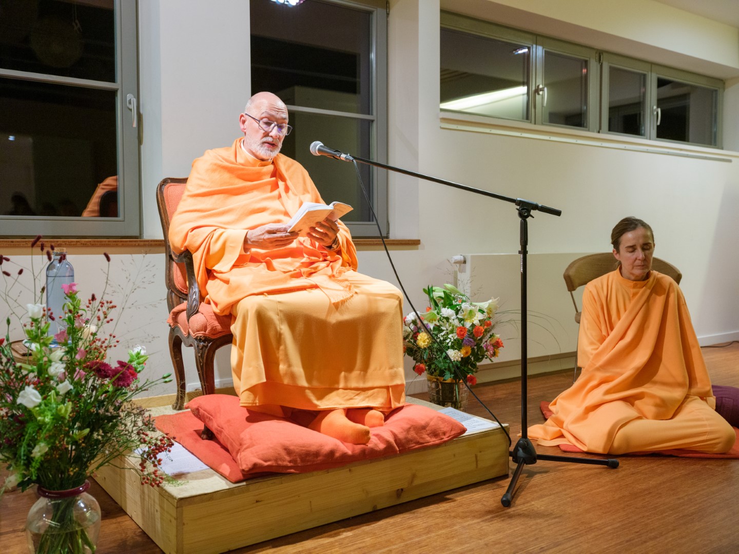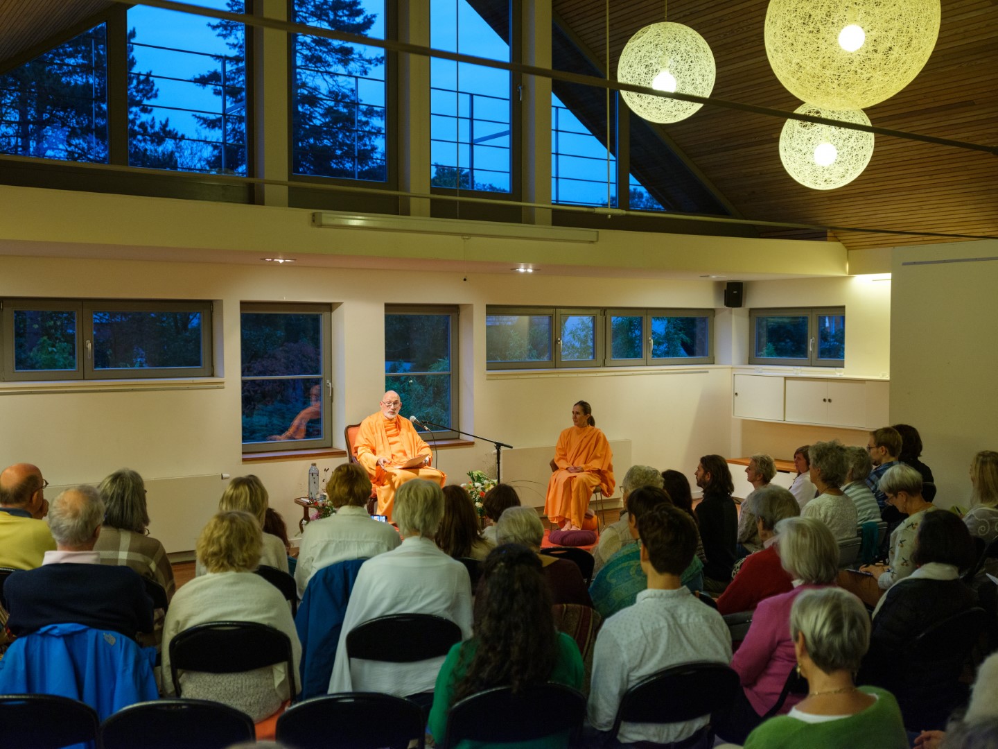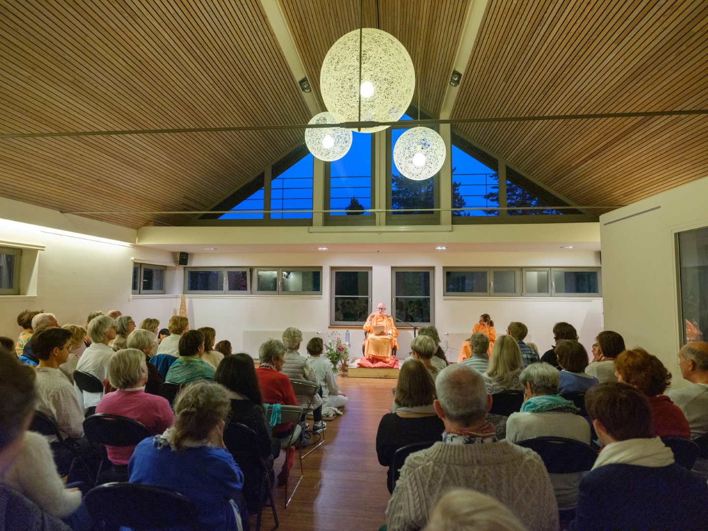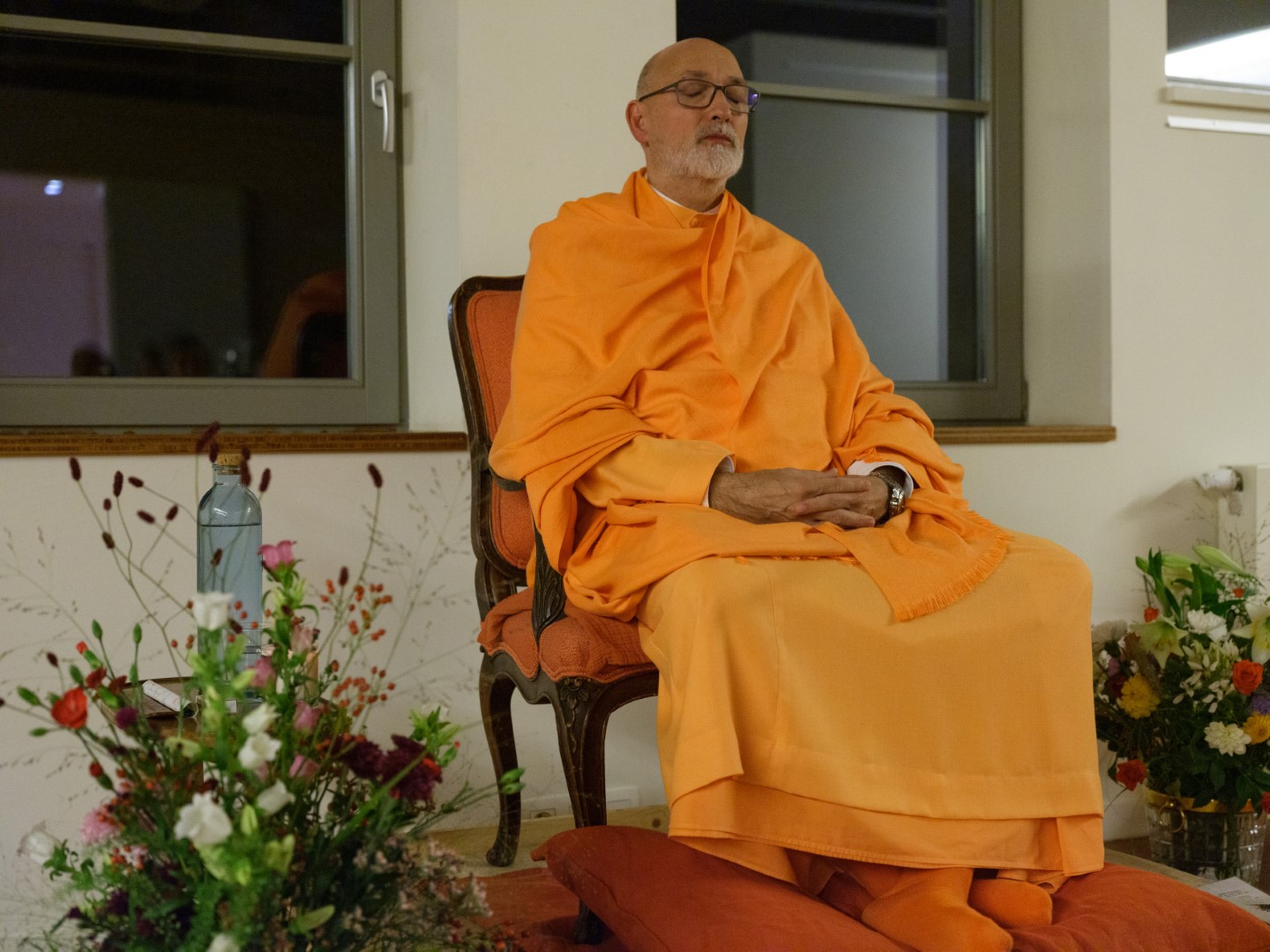 El pasado 26 de octubre de 2023, H.E. Pujya Swami Rameshwarananda Giri Maharaj ofreció una conferencia en el Centre Pérou de Bruselas. Al acto, que tuvo lugar en la gran sala de este centro, asistieron unas 70 personas que siguieron con atención las explicaciones sobre la importancia de la muerte como elemento catalizador de la atención. La conferencia fue seguida por una meditación que permitió a los asistentes poner en práctica las enseñanzas del Swami, que con su estilo ameno y claro, es capaz de acercar a público novel temas espirituales y transcendentales de importancia.