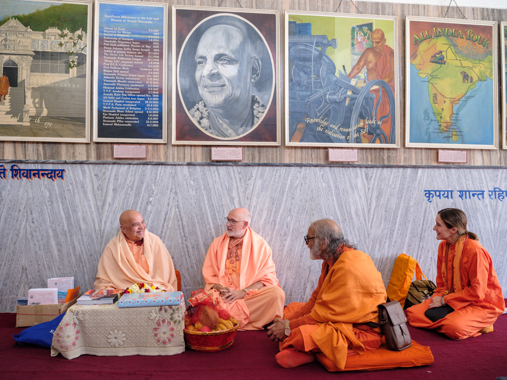 El pasado 5 de diciembre, H.H. Sri Swami Yogaswarupananda Maharaj, presidente de la Divine Life Society, recibió en su sede (Sivananda Ashram de Rishikesh, Uttarakhand, India), a H.E Pujya Swami Rameshwarananda Giri Maharaj, junto a Swamini Dayananda Giri y los 40 alumnos de la Escuela PHI de Yoga Vedanta y Meditación de la Universidad de la Consciencia que le acompañaban.