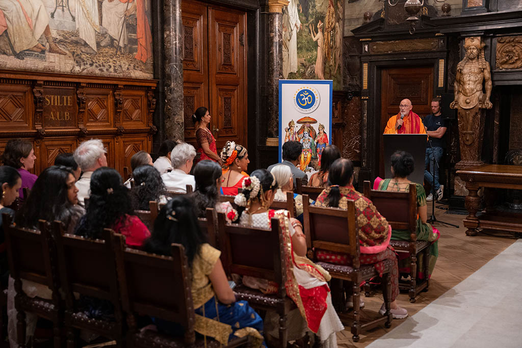 El acto, que tuvo lugar en uno de los históricos salones del ayuntamiento de la capital flamenca, reunió a varios embajadores, la presidenta y miembros del Consejo del HFE, representantes de las distintas federaciones del HFE, numerosos representantes de la comunidad hindú de Europa, representantes de algunas de las tradiciones religiosas de la India, así como representantes institucionales y políticos de la ciudad.