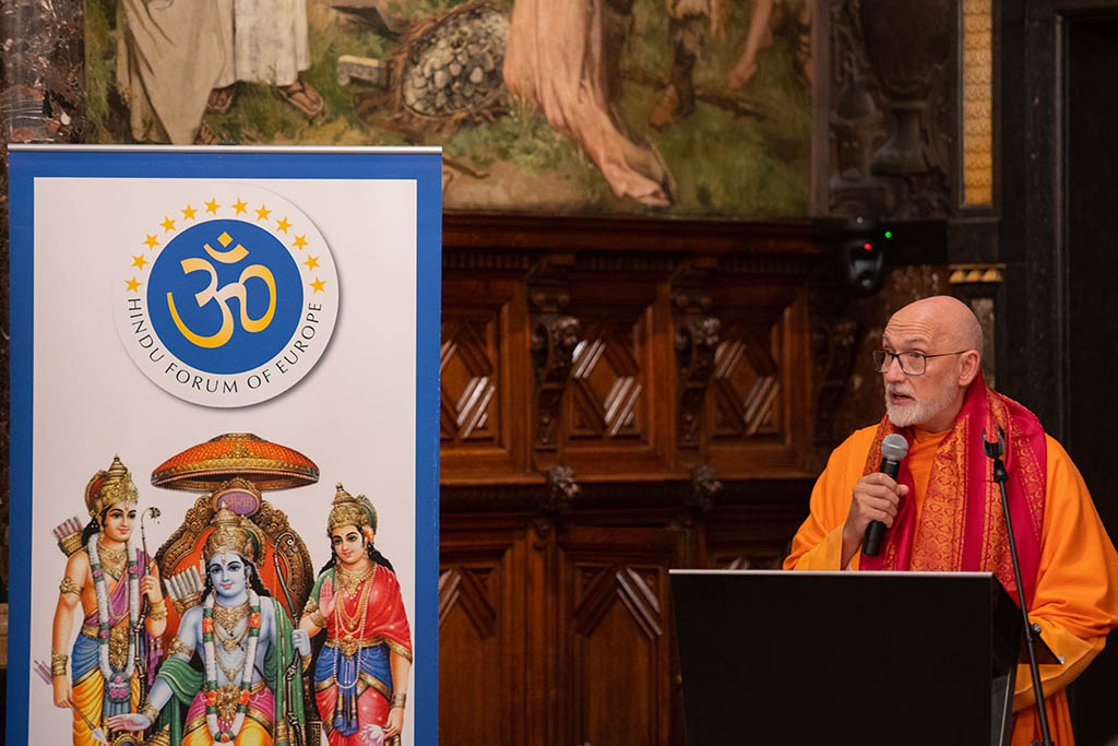 En referencia a la construcción de Europa destacó que “las enseñanzas y valores del hinduismo, basados en la no violencia, la verdad y el respeto por todas las formas de vida, son fundamentales para construir una sociedad más inclusiva y en paz.” “El hinduismo ha llegado para quedarse”, afirmó, “y nuestra contribución al engrandecimiento espiritual y cultural de Europa será duradera.”