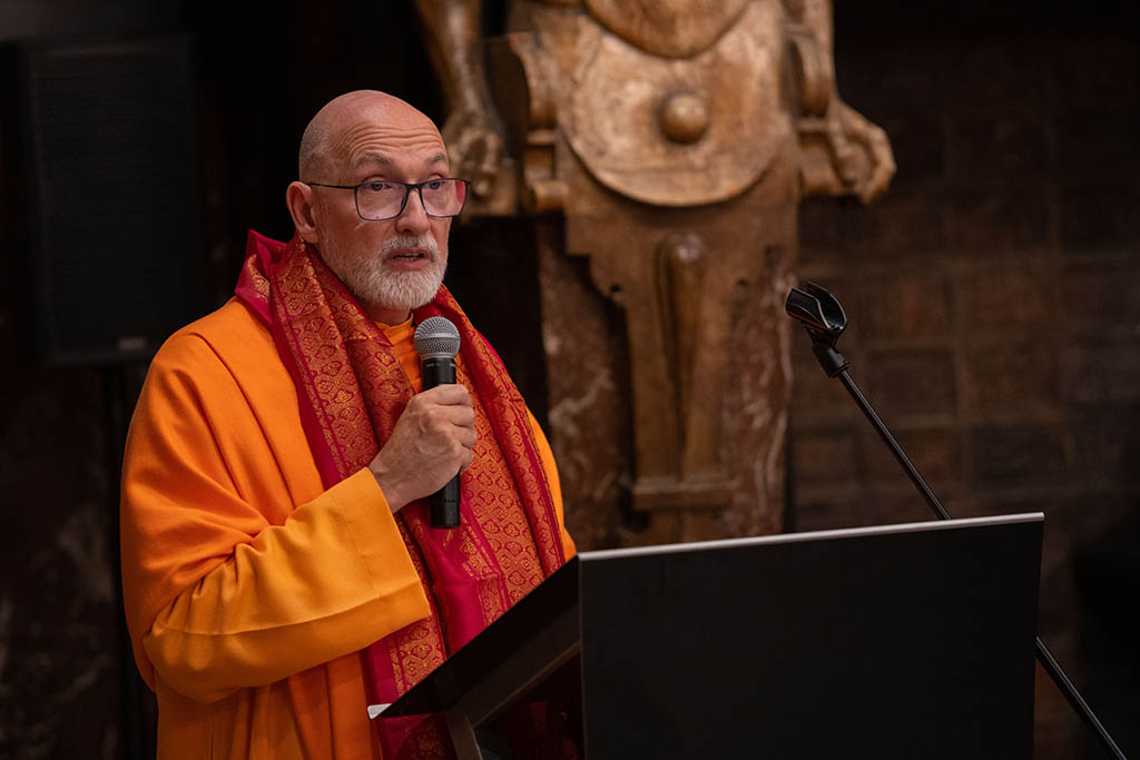 Igualmente en su intervención, Swami Rameshwarananda destacó la labor de la Federación Hindú de España, que ha desempeñado un papel crucial en el bienestar y la visibilidad de la comunidad hindú en España. Ya que, a través de su participación en estudios académicos, de la creación de un Observatorio de Servicios Funerarios y de su trabajo en la promoción de los derechos de las minorías religiosas, la Federación ha ayudado a fortalecer el lugar del hinduismo en la sociedad española. Además, ha fomentado el diálogo interreligioso, colaborando con otras comunidades para construir puentes de entendimiento mutuo.