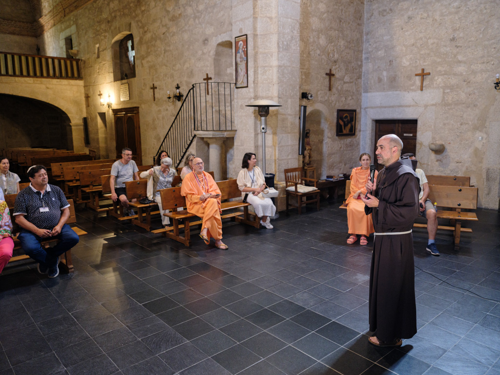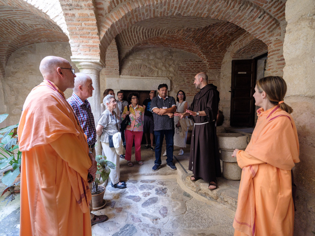 Igualmente hubo tiempo para experiencias en la naturaleza, como un “baño de bosque” en el entorno del Embalse del Prado de las Monjas. Los asistentes participaron de una visita guiada por el Campus PHI, donde se les mostraron los sistemas de depuración de aguas, las diferentes energías renovables que utiliza el complejo y su huerto ecológico. Visitaron también el Centro Vedántico, cuya comunidad monástica pudo compartir, en su sala de meditación, los momentos de silencio y recogimiento con los representantes del FIIT. El último día visitaron el convento franciscano de El Palancar (Pedroso de Acim, Cáceres), fundado por San Pedro de Alcántara, donde el Foro fue fraternalmente recibido por los monjes franciscanos, quienes amablemente guiaron la visita del grupo y se realizó una oración interreligiosa conjunta.